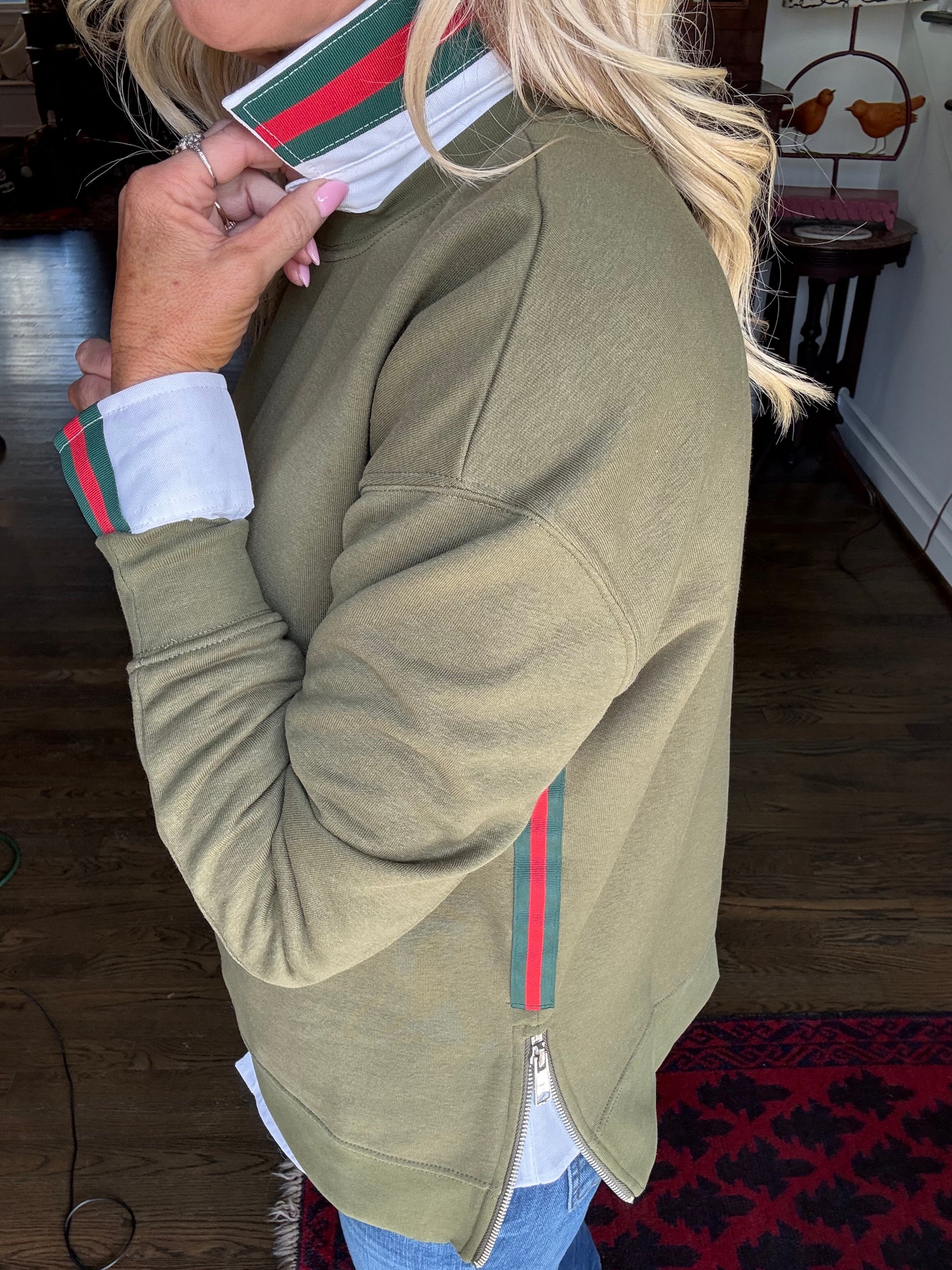 This is an amazing sweatshirt. It’s so cozy. It has zippers on the side. Size up.