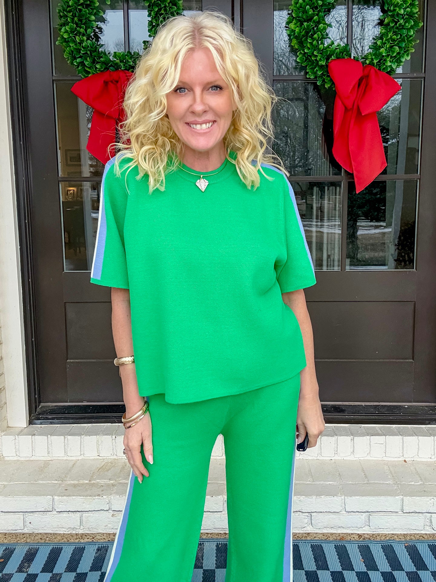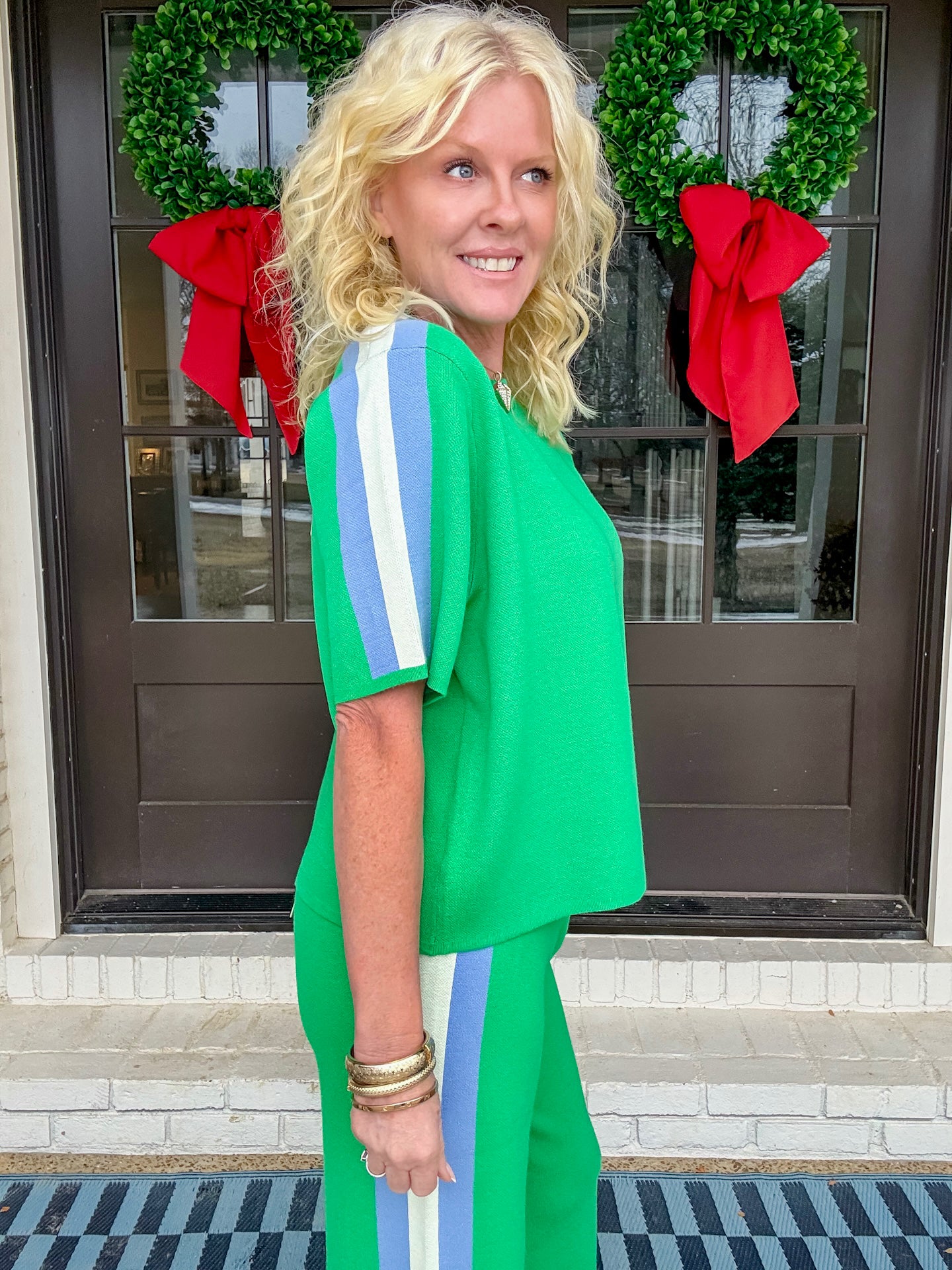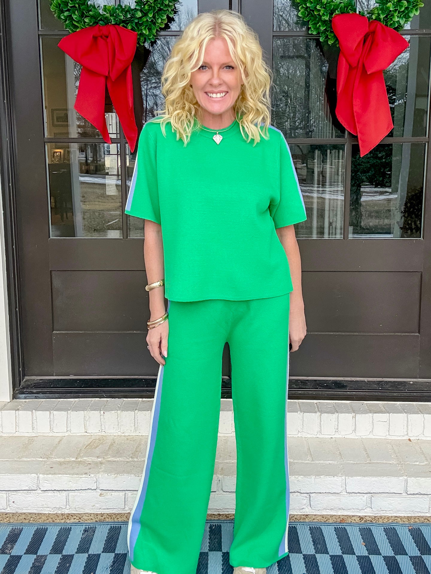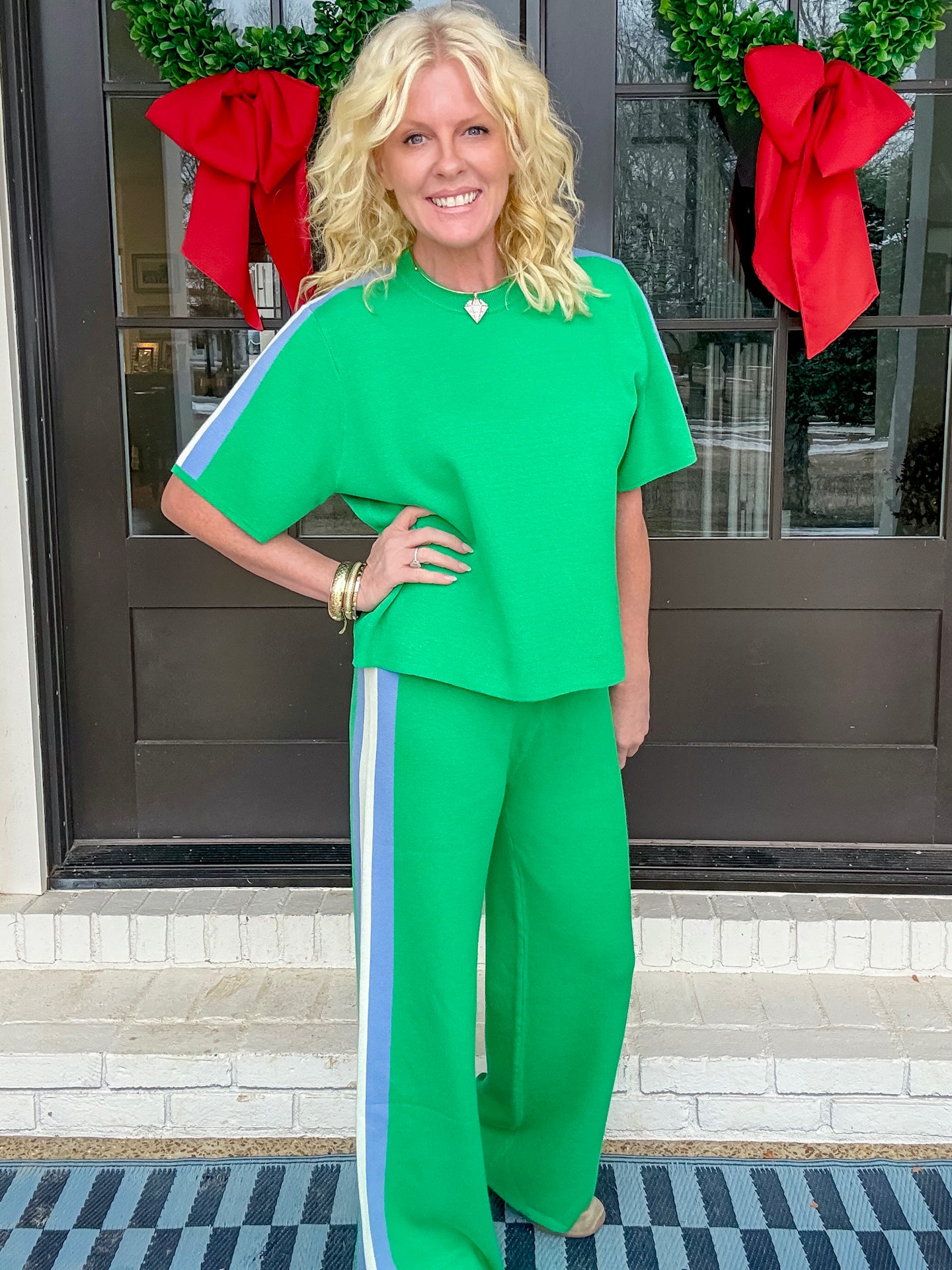 This set is the most comfortable thing we’ve ever had. It’s a pull on waistband. It fits perfectly. True to size. It’s a great weight but completely breathable. So good for the spring.