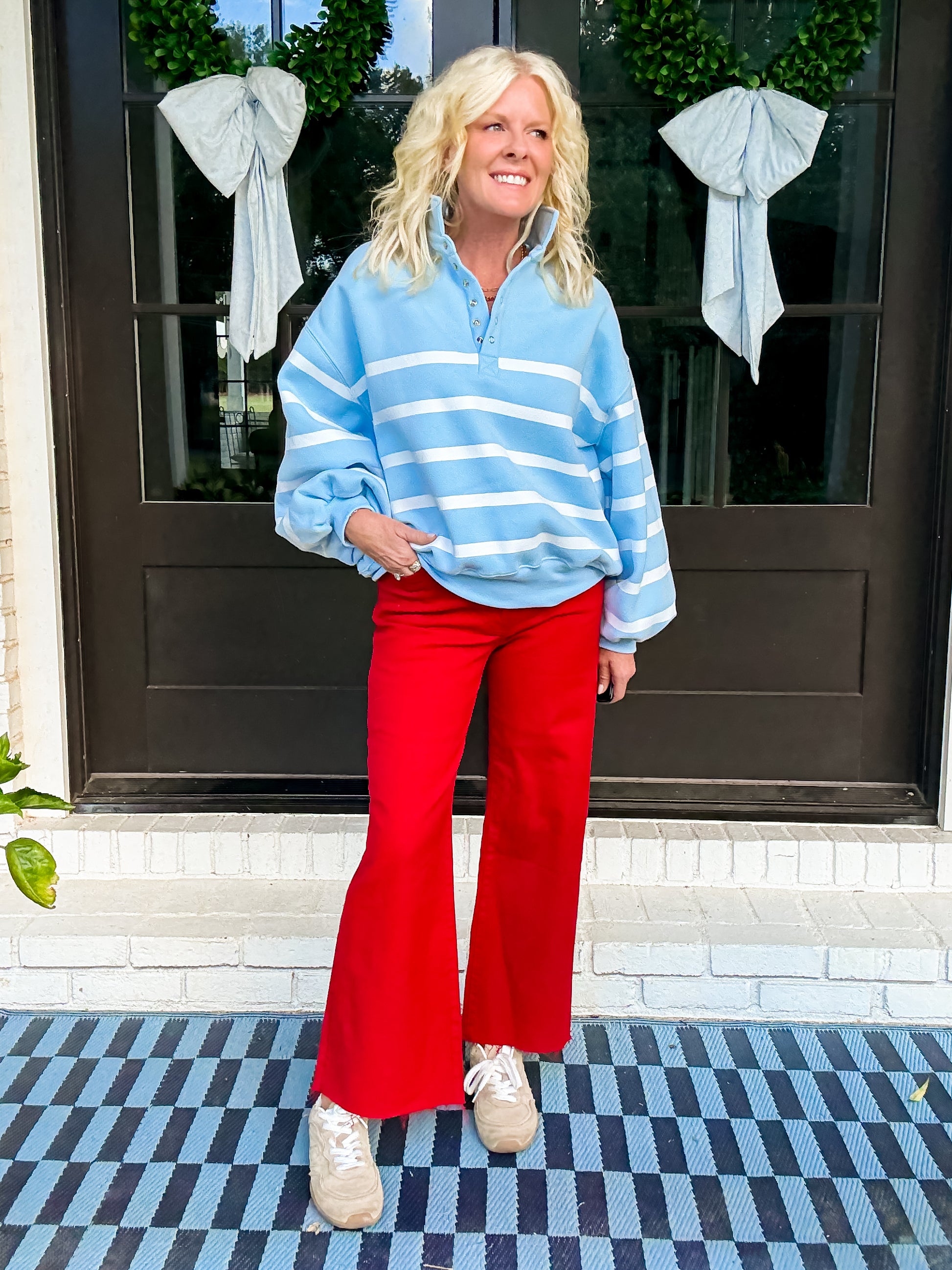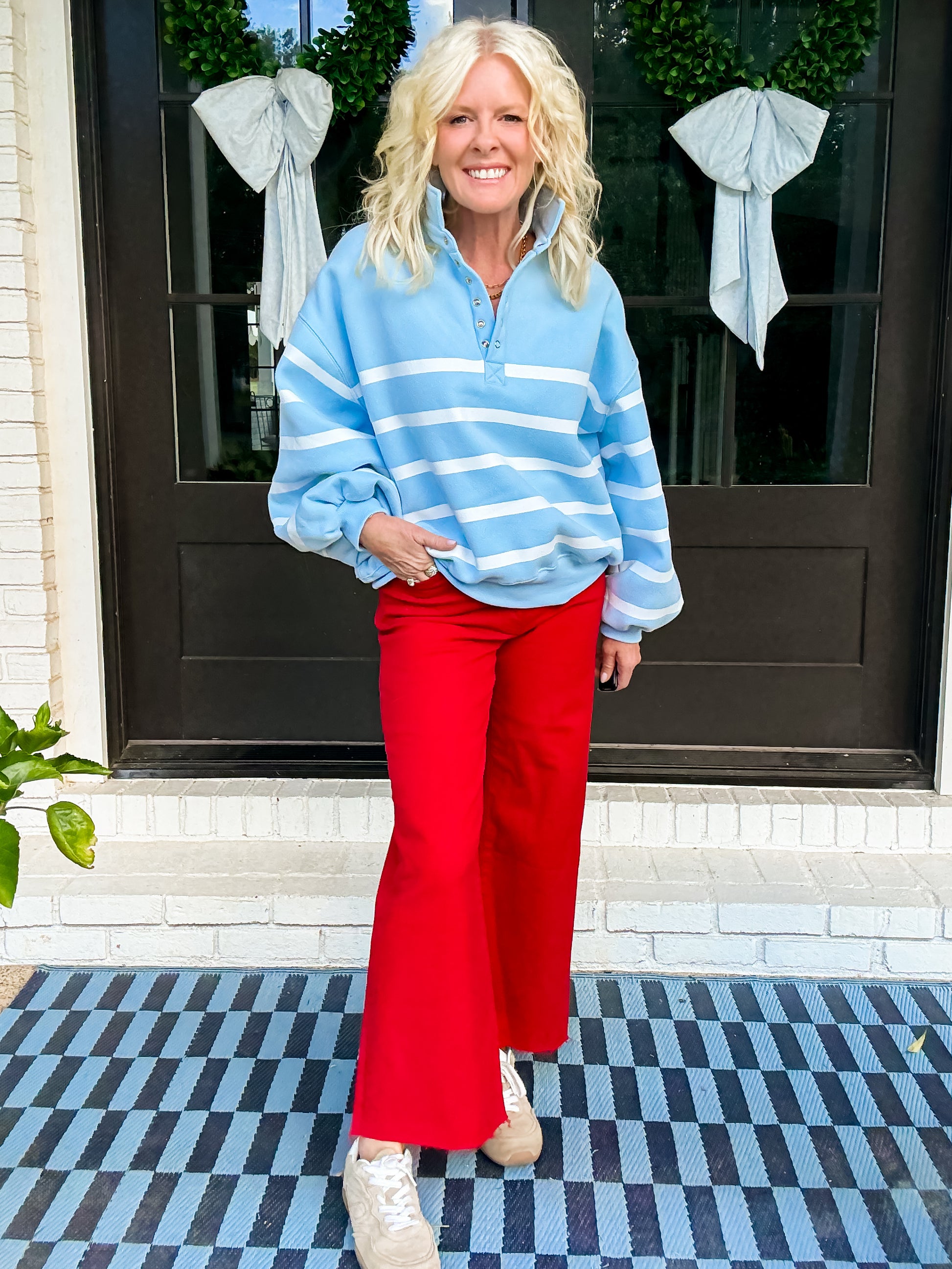 KUT brand. A vibrant hue refreshes the style of these subtly faded, raw-hem, Meg style, high rise wide-leg jeans fitted with Fab Ab front pockets that comfortably shape and smooth.Fabric: 98% Cotton, 2% Spandex. Inseam: 27", Leg Opening: 23", Rise: 10 1/2". Model in a size 0.