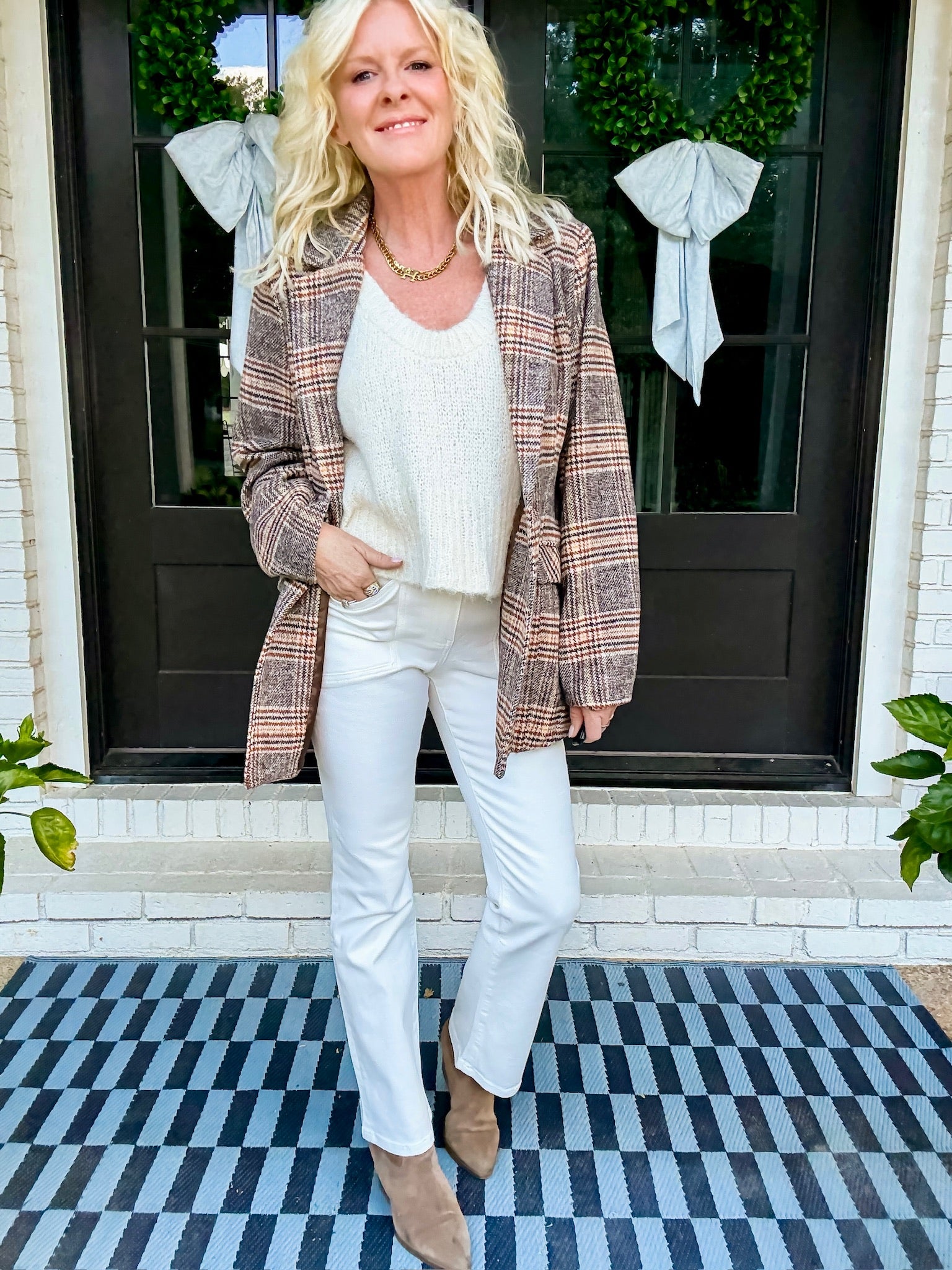 KUT From The Cloth brand. Winter white shade. Detail at pockets. Ankle length. High rise Kelsey style. Runs true to size. Model in a 0.